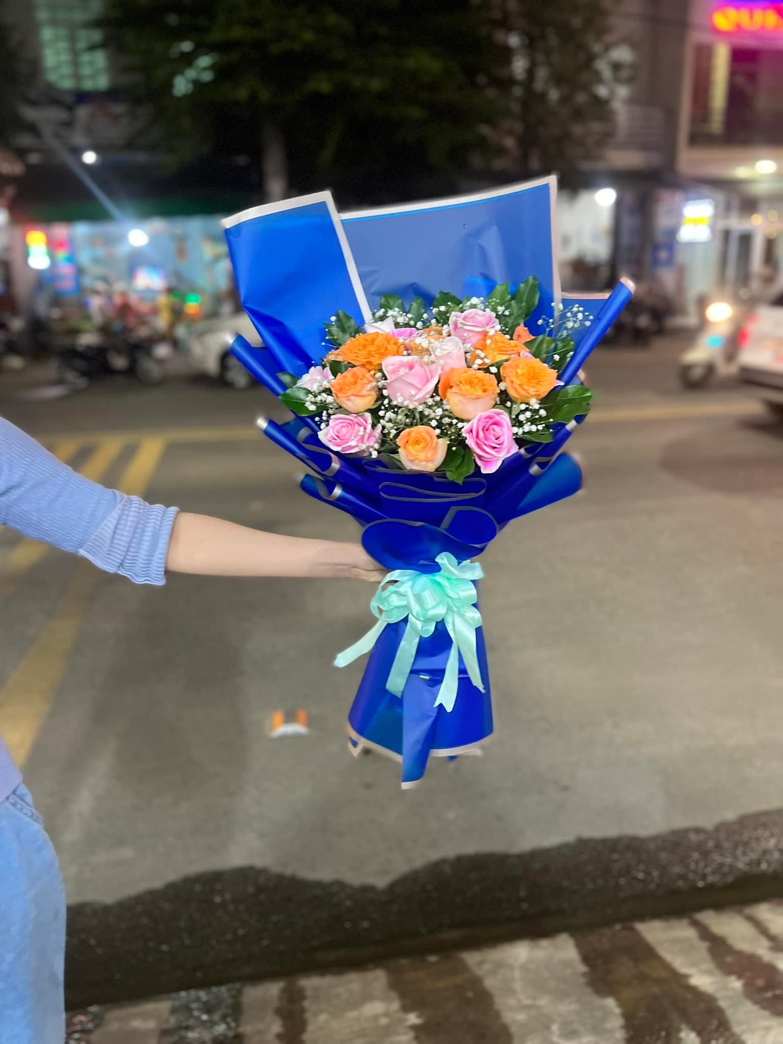 Bó hoa được thiết kế tươi tắn, phù hợp nhiều dịp như sinh nhật, chúc mừng, tỏ tình, tri ân.
